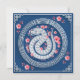 Fira det nya året! Utformningen har en vit orm i blå bakgrund med vita blommor.