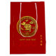 En gyllene kinesisk papprare klippning av ett råtta i en cirkel med väldiga moln + Gott nytt år på kinesiska och engelska, År för Råtta och stort 2020. Utformning på medelstora presentväskor med röd bakgrund. Du kan enkelt ändra Bakgrund färg och år (teckensnitt, färg, storlekare och placering) genom att klicka på anpassningsknappen. Finns på stor storlek. Matchar hälsningskort, inbjudan och mer... Perfekt för ett modernt och tidlöst kinesiskt nyår i Råtta 2020.