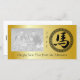 Fira året av hästen med denna slå design som presenterar det kinesiska symbolet (eller japansk kanji) för hästen som omges av en utsmyckad orientalisk stilrundaram på en guld- kulör bakgrund. Förlägga ditt familjfoto för att skapa ett gulligt kinesiskt för hälsningfoto för nytt år kort. sgb01