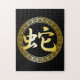 Fira året av ormen med denna slå design som presenterar ett guld- kinesiskt symbol (eller japansk kanji) för ormen som omges av en utsmyckad orientalisk stilrundaram på en svart bakgrund. sgb01