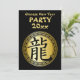 Fira drakens år med vänner och familj party och inbjudan med denna öga-fångstdesign med den kinesiska symbolen (eller japanska kanji) för drake omgiven av ett ornerat orientaliskt stil runt ram på guld och svart bakgrund. All text är helt och hållet anpassade för ert eget tillfälle.