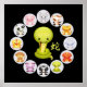Utformningen av en klut för det kinesiska året för ormen med var och en av de tolv djurparksdjuren i en cirkel, med ormen i mitten som ska representera ormens år. Den kinesiska symbolen eller japanska kanji för orm skrivs också i mitten. Bakgrunden till färg kan enkelt ändras, eller så kan du kontakta oss genom vår butik för hjälp. sgb01