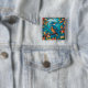 En fyrkantig knapp med en kungsfiskare under hösten i nedfläckad av stil.