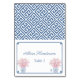 Den här designen säljs som ett 3,5 x 5 tum platt kort som du måste vika (eller räkna och vika) i halva dig själv för att skapa individuella platskort med en vikt på 3,5 x 2,5 tum. Den här klassiska designen har en mörk blått och vit vattenfärg Ginger Burk vas, fylld med blommar av körsbär av rosa (Sakura). Formgivningen har också en grekisk Nyckel gräns på framsidan och en grekisk Nyckel mönster på baksidan. Du kan ändra kontrasten färg (för närvarande en mörk blått) genom att ange verktyg ("klicka för att anpassa ytterligare" under textrutorna) och ändra färgerna i bakgrunden.