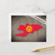 Postkarte mit einem Umriss von Kirgisistan, gefärbt in den Farben der Nationalflaggge.