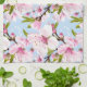 En kökshandduk prydd med ömtåliga körsbärsblomgrupper i mjuka rosa och gröna nyanser på en lugn blå bakgrund, som ger en elegant och lugnande touch till vardaglig matlagning och köksinredning. Ett raffinerat och presentklart val för naturälskare och beundrare av graciöst blommigt formspråk.