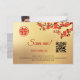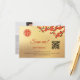Vackra röda körsbärsblommor på en guldbakgrund. Med en dubbel lyckosymbol. Passar till min kinesiska bröllopsklädsel. "Skanna mig"-ord i ett elegant klassiskt handskrivet manus och ett utbytbar QR-kodskort för detaljer på din bröllopswebbplats och RSVP online. QR-koden är enkel att byta: Kopiera och klistra in webbadressen till din webbplats och lägg till den här istället för den anpassade QR-kodadressen.