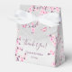Vackra rosa kirsktorn blommor på en silver glitter bakgrund. Söt botanisk present låda med en tack text och anpassade brud och brudgum namn och bröllopsdatum.