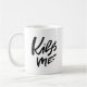Roligt och modernt mugg med handskript med texten "Kiss Me". Denna design finns i en rad olika produkter. Liknande poster finns också tillgängliga.