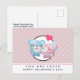 Ett valentins vykort med personlig på baksidan. Designad med en söt tecknad av ett björnpar, är hon pastellernas rosa med lite bog och kysser kinden av en blå björn som ser positivt glad ut. Ett litet rosa hjärta flyter över huvudet. Mycket söt och kawaii. Bakgrunden till mönster är en föränderlig rosa färg med vitt polka dots.