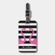 Detta tropiska bagagetong dekoreras med en fuchsia som kysser flamingos på en svart och vit strimlad bakgrund och personlig med Mrs. new last name, på framsidan och all din personliga information på baksidan, skapar den perfekt för hennes smekmånad.