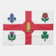 The flag of Montreal proudly displayed on this kitchen towel showcases a vivid red cross on a crisp white background, symbolizing the Cross of St. George. Each quadrant contains a distinct floral emblem that pays tribute to the city’s founding peoples: a blue fleur-de-lis representing the French, a red rose for the English, a green shamrock for the Irish, and a purple thistle symbolizing the Scottish. These vibrant symbols stand as a testament to unity in diversity—hallmarks of Montreal's identity.