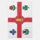 Montreal flag kitchen towel, patriotic kitchen decor, Canadian city flag towel, Montreal cooking towel, Quebec kitchen accessory, Cross of St. George towel, fleur-de-lis kitchen linen, red rose dish towel, Irish shamrock drying towel, Scottish thistle tea towel, multicultural flag towel, Canadian heritage kitchen linen, Montreal culinary decor, kitchen towel with floral emblems, Montreal pride dish towel, symbolic Canadian kitchen cloth, unity in diversity kitchen item, historic city flag towel, Montreal home and kitchen decor, decorative Canadian towel