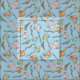 Kitikoner i paletten vintage färg. Sömlös mönster. Ljusblå bakgrund.
