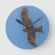 Väggklocka med lustig porträtt av en Kite under flygning mot blå himmel.