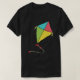 Kite-konstruktionen visar en hand plockade-drake som flyger i luft med geometriskt färg, Kite svan och rosett band. För Kite flight fläkt.