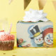 Retro-roligten med ett par snögubbe, ljus, klockor och prydnadsföremål.