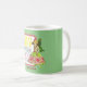 Kitschy & coola mugg för Mahjong älskare har vintage kostumed fairy cutout, mahjong tiles och mahjong Queen på ljust grönt bakgrund. Anpassa med namn eller monogram