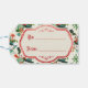 This gift tag features a classic vintage Christmas design on a lightly textured, off-white background, framed by holly and berry garland with red ribbons and small blue snowflakes. The main repeating image shows two adorable, rosy-cheeked retro-style snowmen wearing colorful winter accessories: one has a green knit hat and mittens and holds a red stocking, while the other wears a white knitted cap and fringed red scarf. The top of the paper prominently features the greeting "MERRY CHRISTMAS" in a simple black font, giving the paper a festive and nostalgic feel.