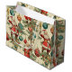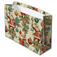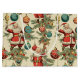This whimsical Santa gift bag exudes a playful nostalgia, transporting you to a bygone era of holiday cheer. The background is a warm, creamy beige reminiscent of vintage parchment, allowing the vibrant illustrations to pop with festive merriment.