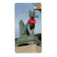 Fox (Kitsune) som håller ett nyckel i munnen, längst grind i Fushimi Inari Shrine, Kyoto, Japan. Inträdet till en Inari-skalk har vanligtvis vissa kitsune-statyer, som ofta av respekt är prydda med röd jodarekake (votive bibs) av gudspartier. Detta röda färg har kom att identifieras med Inari, på grund av att dess använda är utbredd bland inariska helgedomar och deras torii. Globe Trotters specialiserar sig på idiosynkratiskt bildmaterial från hela världen. Här hittar du unika hälsningskort, vykort, Poster, Mousepads med mera.