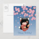 Kitsune Kokeshi-docka - Svart Rävgéisha Födelsedag Vykort