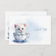 Vackert Kitten i Kopp Blåa blommor tackkort
