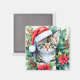 Kitten i Santa Hat-julets vattenfärgskonst Magnet