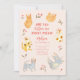 Katt av roligt kallas födelsedagsfest inbjudan med illustration av söta katter med hattar av party och rosa blommor. I texten står det "är du kattunge mig höger meow".