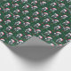 Den här vackra "Meowy jul!"-papper har en svart och vit tecknad med stor grönt ögon på den på gröntens bakgrund med poinsettias och bär.