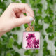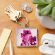 KITTEN MED RO,Rosa Fuchsia White Fyrkantig Silverfärgad Nyckelring
