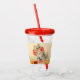 Akryltumlare med Meta Plückebaums verk Kitten med rött band (b. 1876). En grått kattunge med mörk rand är vackert försedd med ett rött band. Kattungen leker med ett bi. Gula blommor dekorerar förgrunden. En underbar gåva till kattälskare och tyska konstentusiaster!