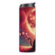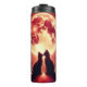 This enchanting digital illustration features the romantic silhouettes of two kittens sitting side-by-side under the glow of a massive, detailed full moon. The artwork is bathed in warm crimson and golden tones, creating a magical evening atmosphere. Vibrant pink and red hearts float through the air like stardust, while the foreground and surrounding forest are rendered in rich, stylized textures. This seamless-style graphic is designed as a full-wrap for insulated tumblers, offering a breathtaking 360-degree visual narrative of feline affection. The high-contrast lighting and dreamlike setting make it an ideal gift for cat lovers or a stunning accessory for Valentine Day celebrations.