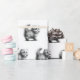 Skiss av kattel isolerad på vit bakgrund med grönt ögon och en rosa nos tittar bakåt