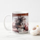 Kitten vaknade precis i behov av kaffe. kaffemugg