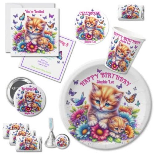 Kittens, Butterflies och Flowers Birthday Inbjudningar