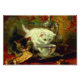 Photo Print med Henriëtte Ronner-Knips oljemålning High Tea (1821-1909). En flytande, vit kattunge från tekopp och en bordsburk gör en konditor på en tebricka. En perfekt gåva till kattälskare och romantikentusiaster.