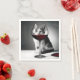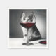 A curious kitten peers through a large glass of red wine, creating an amusing optical illusion. The scene is set against a monochromatic background, highlighting the contrast between the cat and the wine.