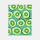 Kiwi-skivor på turkos fleecefilt