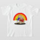 En söt tecknad som illustrerar en kiwi som spelar sång på en akustisk gitarr, under en regnbåge. På gitarren står det waiata, det här är Reo/Maori-språket för sång.