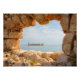 Kizkalesi (Maiden's Castle) - ett slott på en liten ö nära Mersin på Turkiets södra kusten. Detta är synsättet genom ett fönster i ruinerna i den gamla staden Corycus på fastlandet. [Våra resefotografier och -utformningar är tillgängliga som presenter för hemmet, kort, pussel, väggkonst med mera]