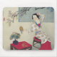 En dam sitter framme av ett dressingbord. En spegelhållare och få hårprydnadar på bord visar enkelheten av henne dressingen och makeup. Två lotusblommar och stora gröna löv i vasen, en gren av plommonblommarspridning doften och indikerar också renheten av denna dam. Riktningen av plommongren och ärmar för ladyï¿ ½ s är det av henne placerar precis tvärtemot och bord, visning en väl allsidig sammansättning.