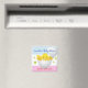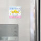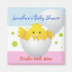 En chick som skrafferas mitt i bilden. Den översta banderollen i ljusblått himlar med anpassade och grund rosa med datumtext för anpassade.
