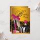 Elegant spets, svart och het rosa parfymflaska, röd läppstift och rosa och guld het rosa zebra klacksko födelsedagsfest inbjudan. Denna snygga het rosa zebra födelsedagsfest inbjudan kan enkelt anpassas för ditt evenemang genom att lägga till dina evenemangsuppgifter, teckensnittsstil, teckenstorlek & färg och formulering.