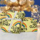 Gay pride-temat papper omslutning är perfekt för ett kommande firande - har stor regnbåge med "kläder är för kläder" i fet svart text på ljusbakgrund för gulten