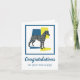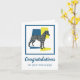 Kläder/italiensk silhuett från Greyhound hund i gult blue och svart, modernt rutnät från linjer mönster. Grattisar på din nya valp på utsidan och det roliga meddelandet på insidan kan ändras till vad du vill.