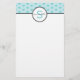 Vattenblått och vitt clamshell-mönster med namn och monogram.