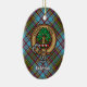 Klan Andersson vapensköld-bricka omgiven av ett band och ett låsbeslag över tartanbakgrunden. Anpassningsbar på båda sidor.