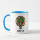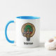 Klan Andersson vapensköld-bricka omgiven av ett band och ett låsbeslag över tartanbakgrunden. Anpassningsbar på båda sidor.