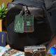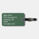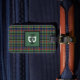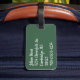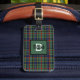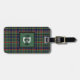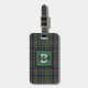 Handsome plaid bagagetagg gjord i den färgstarka skotska klan Bisset tartan mönster. Ett textområde i grönten, på mitten-framsidan, har ett vitt monogram för brev och ett svart namn-redo för att anpassa sig. Baksidan av märkrn är solid grönt med informationstext i vitt.